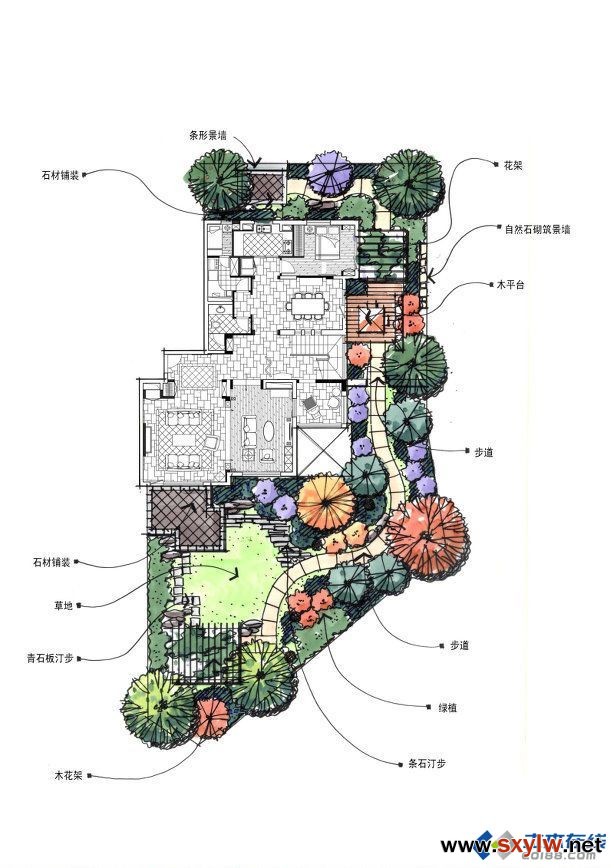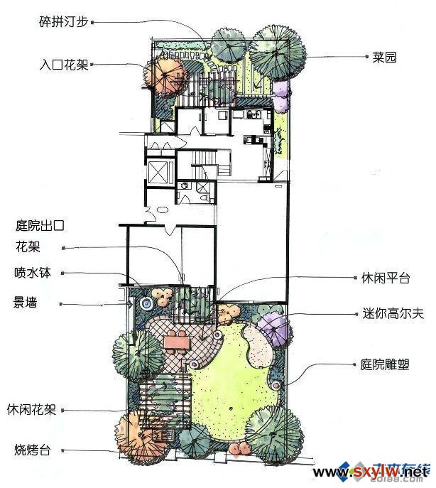 4、住宅庭园设计要考虑园主的爱好;掌握庭园设计的原理与原则,运用设计方法。