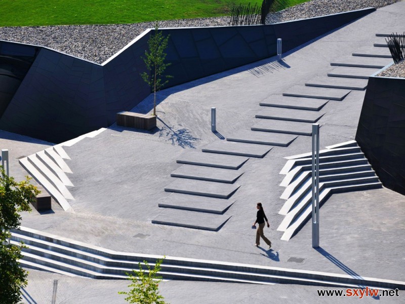 随着人们生活质量的提高,该地区的人们似乎越来越需要一个崭新的,宽阔的健身广场来满足他们的精神需求,可是,该区域目前已经几乎被各种各样的景观占满了,唯一的一片空旷地带就是一个草坪区,四周是几条通道和小径,位于Terme Olimia的中心位置。该设计团队希望此次的广场设计能够拥有很强的综合性和包容性,这样的话,在一些板块的建设上就需要一个大跨距的空间以及非常高大的室内空间。为了达到所期望的目标,设计团队手下的健身广场更多的像一个园林景观而不是一栋硬生生的大楼。该广场的外观呈折叠状,该结构效果是通过一系列的承重墙来实现的,这些承重墙将广场上的绿色区域分为不同层次,布局方面也做的很到位。因为在该项目中,健身广场并不打算设计成以往的健身大楼,所以空间格局的布置并没有限制在道路围成的区域内,可健身的地方遍布整个广场,只要视线能到的地方,一定会有健身设施的存在。