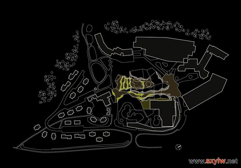 随着人们生活质量的提高,该地区的人们似乎越来越需要一个崭新的,宽阔的健身广场来满足他们的精神需求,可是,该区域目前已经几乎被各种各样的景观占满了,唯一的一片空旷地带就是一个草坪区,四周是几条通道和小径,位于Terme Olimia的中心位置。该设计团队希望此次的广场设计能够拥有很强的综合性和包容性,这样的话,在一些板块的建设上就需要一个大跨距的空间以及非常高大的室内空间。为了达到所期望的目标,设计团队手下的健身广场更多的像一个园林景观而不是一栋硬生生的大楼。该广场的外观呈折叠状,该结构效果是通过一系列的承重墙来实现的,这些承重墙将广场上的绿色区域分为不同层次,布局方面也做的很到位。因为在该项目中,健身广场并不打算设计成以往的健身大楼,所以空间格局的布置并没有限制在道路围成的区域内,可健身的地方遍布整个广场,只要视线能到的地方,一定会有健身设施的存在。