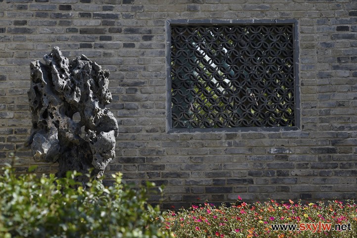 (2)新旧融合 新材料的运用与废旧材料的再利用相得益彰。滁州旧城区拆迁的老房子的旧砖作为我们营造景墙的重要材料,采用传统工艺的灰沙砌筑景墙,呈现出天然的沧桑感。将回收的旧青砖使用在了复建的醉翁亭上,赋予新亭具有历史韵味。旧马槽的鱼池运用作为点景放置于景墙之下,等等。同时选用火山岩的机切面,来与传统的老砖进行搭配,独特的肌理与工艺使用,与醉翁亭形成了强烈的对比。不锈钢的池边与几何草坪,将周边环境反射,不但融合了旧的材料,也形成了特有的水池边界形态。新旧对比,新旧融合,